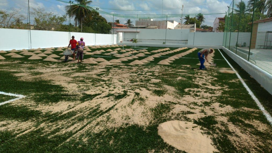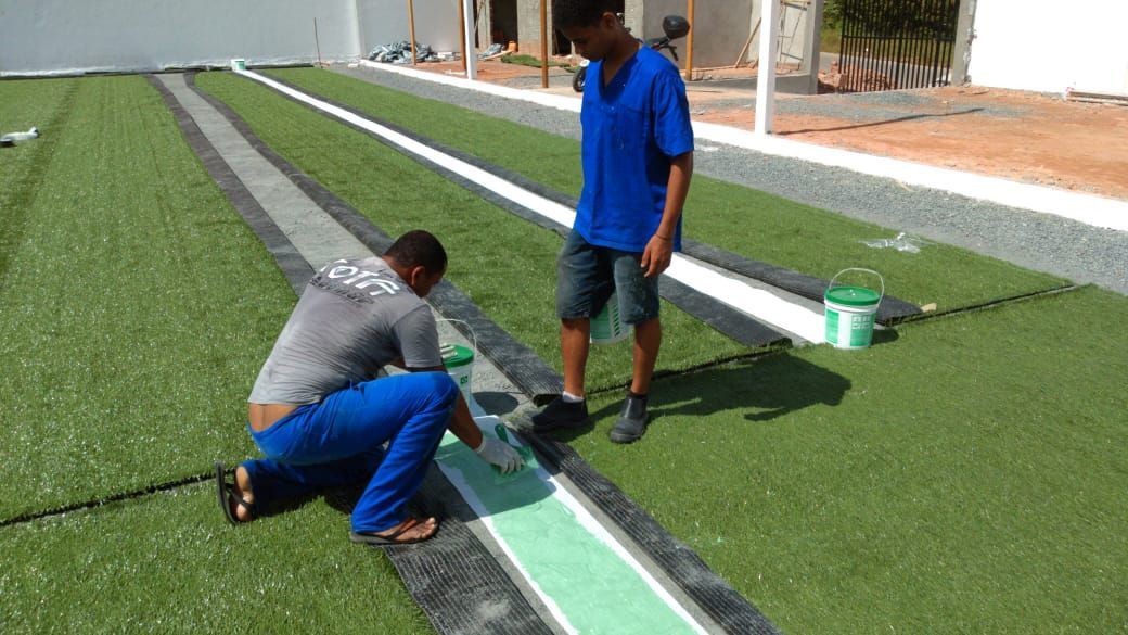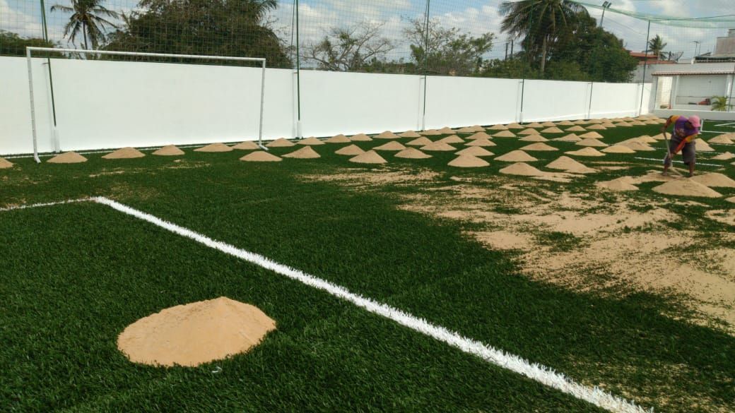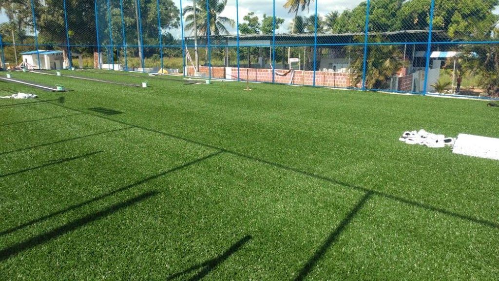A grama sintética do tipo Fibrilada é mais recomendada para locais mais quentes e para pessoas que estão montando seu campo pela primeira vez.