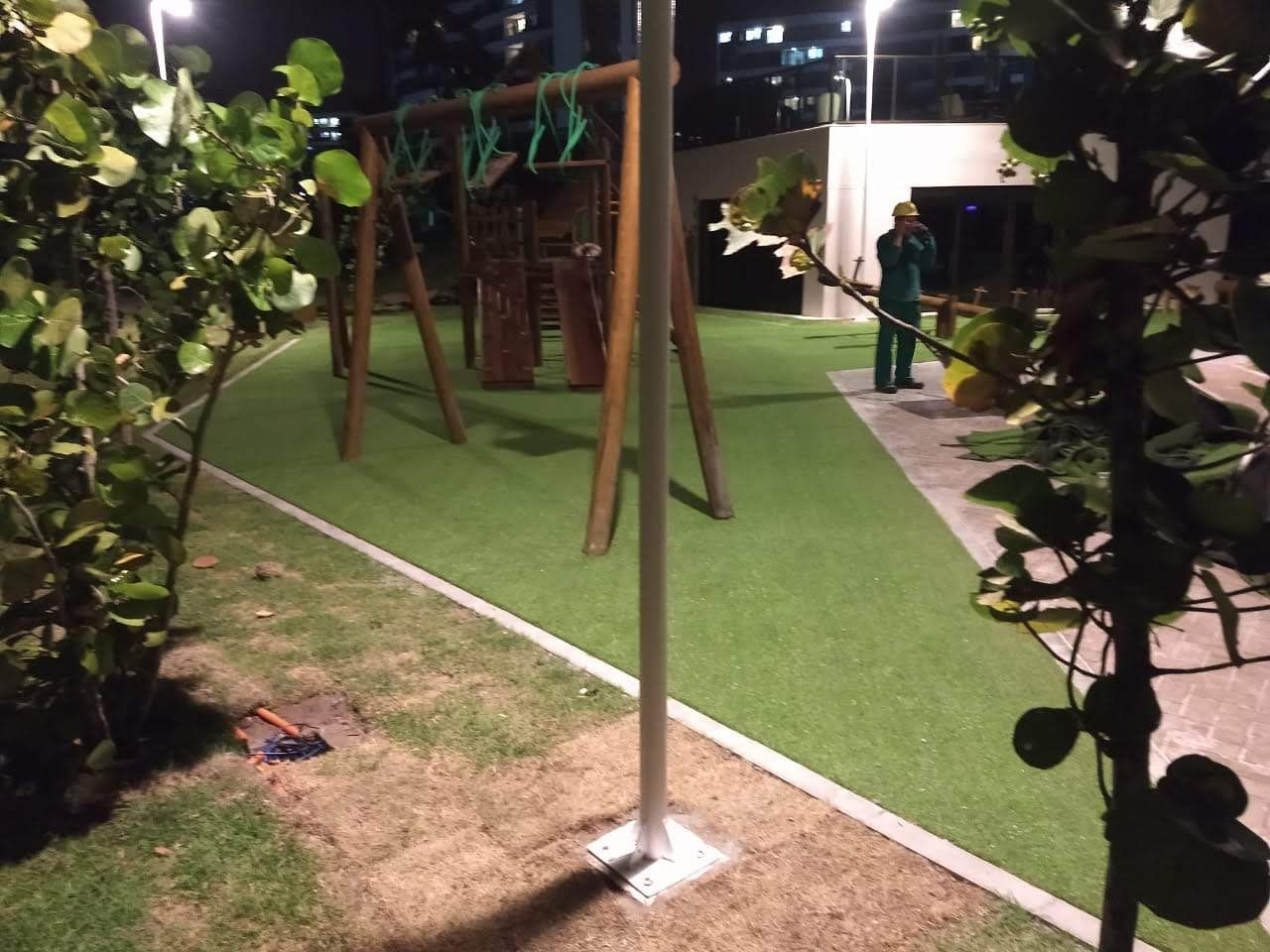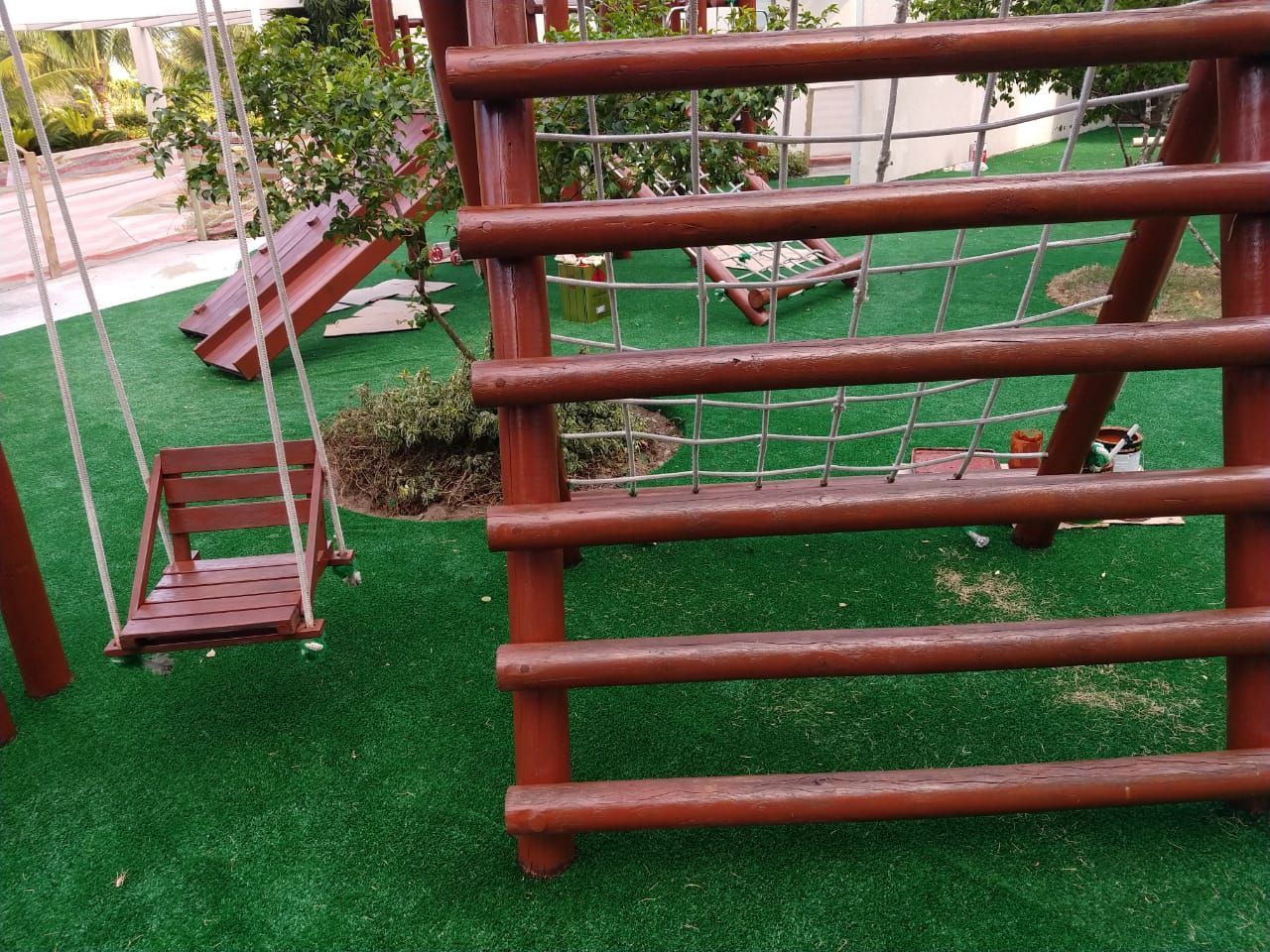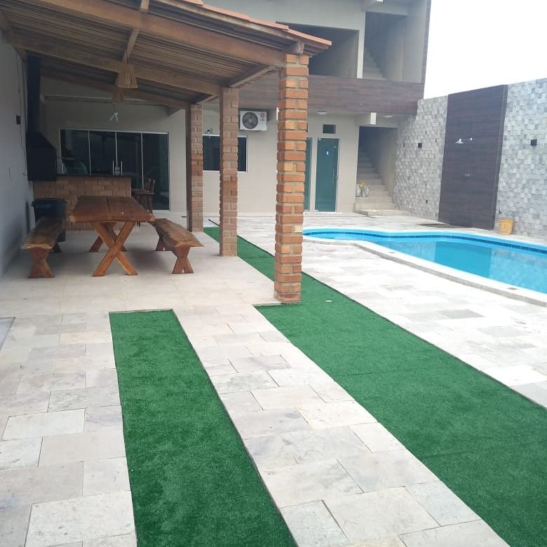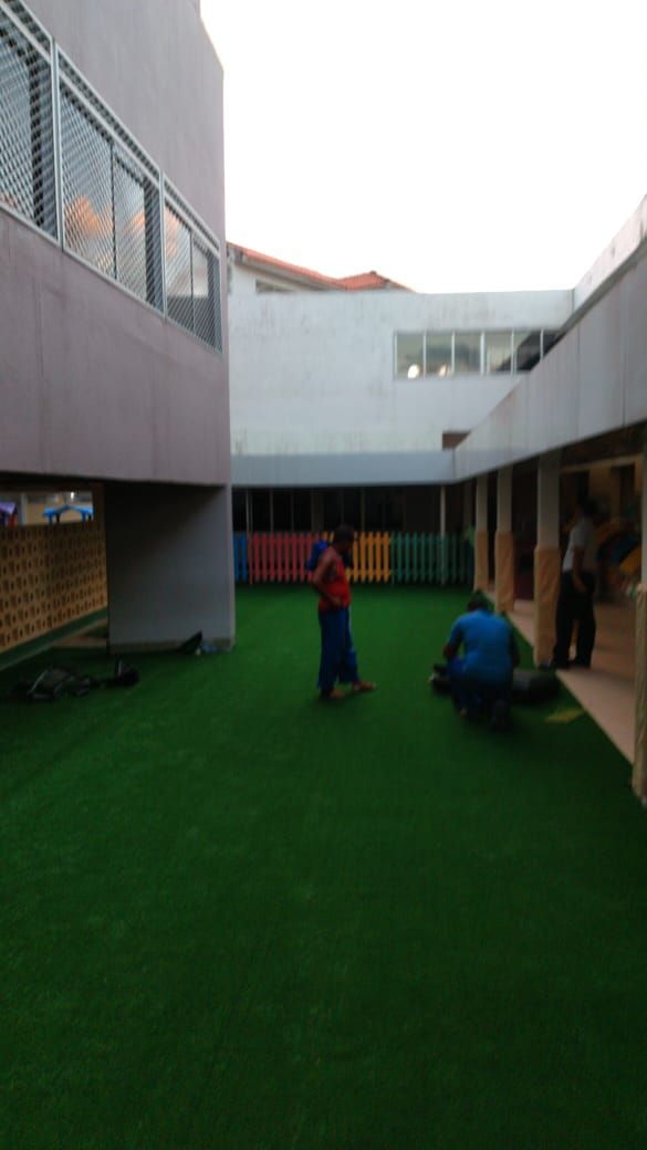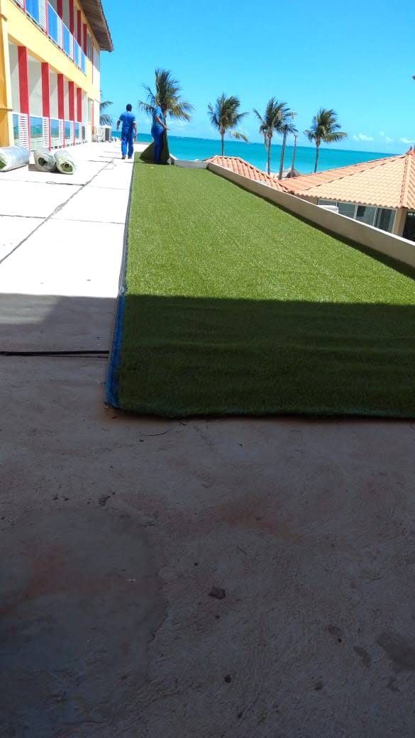 Lavar apenas com água e nunca usar produtos químicos na grama sintética;