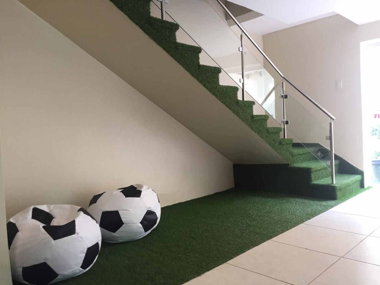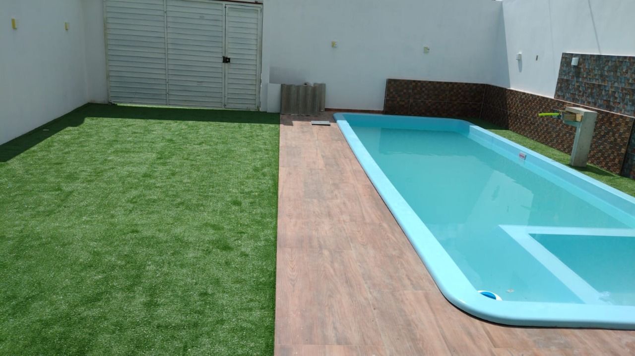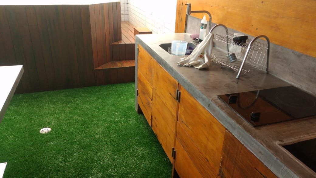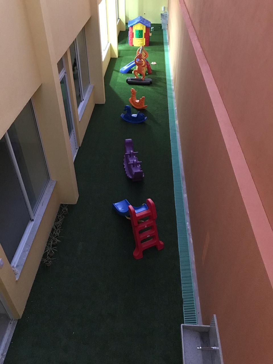 Lavar apenas com água e nunca usar produtos químicos na grama sintética;