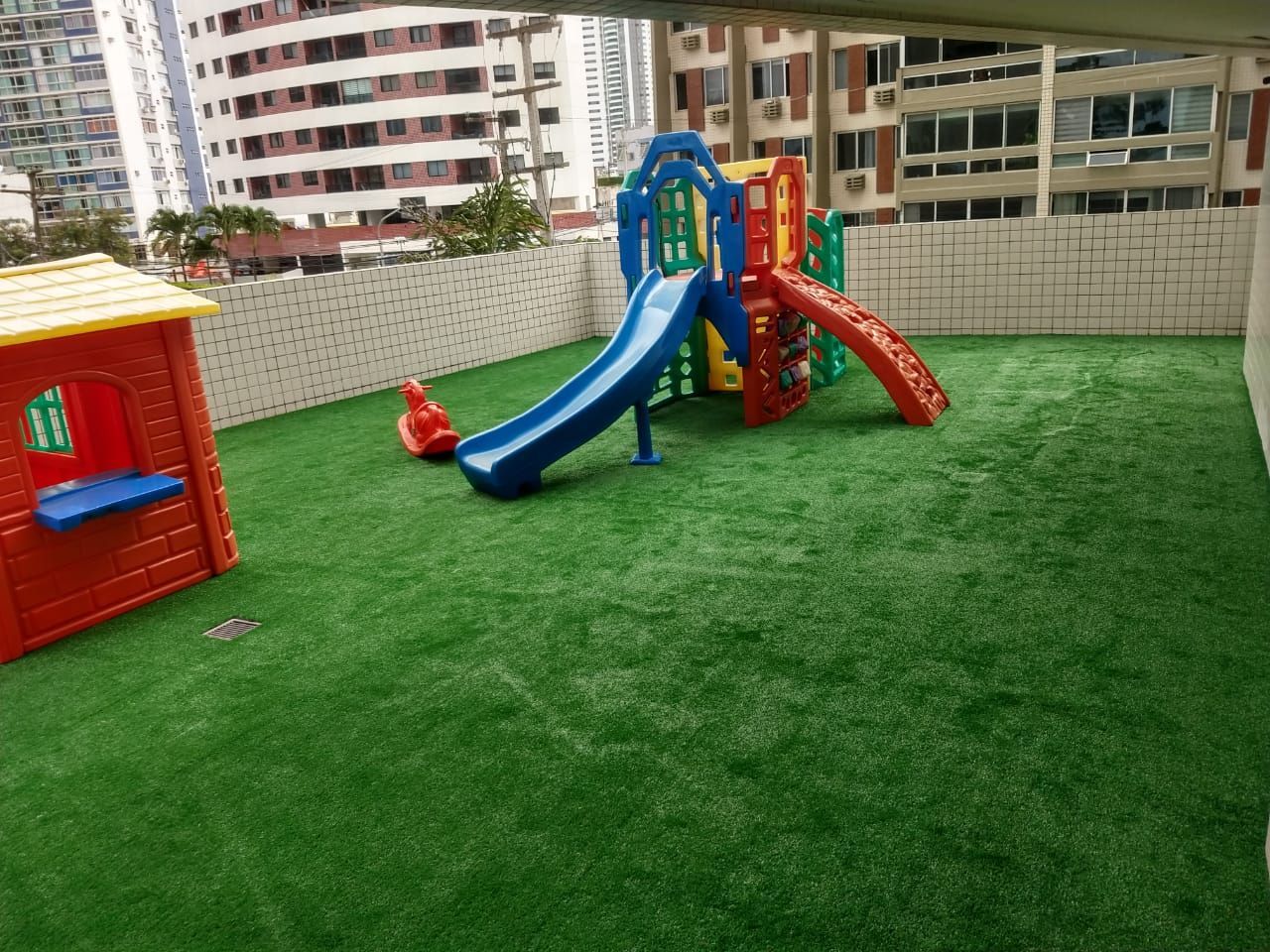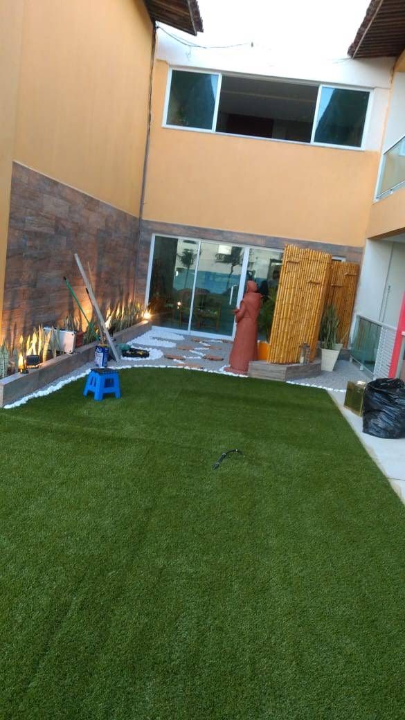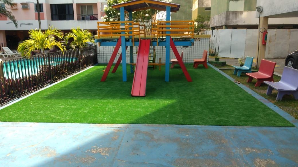 Recomendada para Jardins, playgrounds, ambientes internos, ambientes externos, escritórios, eventos, paredes, projetos de paisagismo e Mini Campos de Futebol. Possui proteção UV, é permeável permitindo assim que a água passe normalmente, e pode levar chuva.